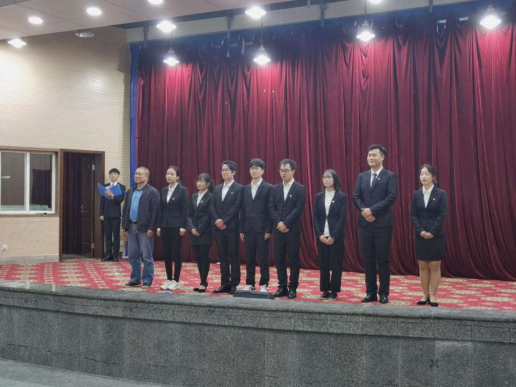 大会进入表彰环节,党委办公室副主任、团委副书记江丽老师分别宣读了2019-2020学年必赢71886网址登录先进工作者名单,优秀部门名单并颁奖进行表彰;宣读第三届青年先锋队队长名单,第七届主席团及各部门部长委员名单并颁发聘书。由党委副书记赵中国老师宣读第四届青年先锋队队长、部长名单及职务,第八届主席团及各部门部长名单及职务,并与各同学们进行合影留念。随后,在第四届青年先锋队队长、第八届学生会主席孔祥民的带领下,全体学生干部进行庄严宣誓,团委学生会换届正式完成。