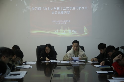 会上,唐基博首先向与会人员介绍了必赢71886网址登录第十五次学生代表大会各项章程修订情况,并对工作报告做了详尽的解读,他要求各部门部长要仔细研读报告内容,向学院团员青年传达好本届学代会精神。希望大家要在学院的领导下发挥青年作用,引领创新发展。为学院的各项工作目标的完成贡献青春力量。随后,由参加本次学代会的代表给大家分享庄天慧书记的讲话:希望各位学生代表和学生干部不断坚守服务同学的初心和使命,从同学实际出发模式做事成事,争做学生“友”,不做学生官。