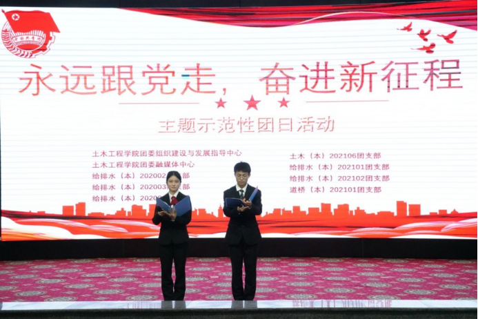 为持续深化党的百年奋斗重大成就和历史经验学习教育,引导土木学子深刻感悟新时代党和国家事业发展的伟大成就。必赢官网于4月19日下午在图书馆报告厅举办以“永远跟党走,奋进新征程”为主题的示范性团日活动。本次活动由土木院团委组织建设与发展中心,融媒体中心以及7个班级团支部共同筹办。党委办公室主任江丽、党委办公室老师邓克莉、主席团全体人员出席本次活动。土木院400余名同学参与此次活动。