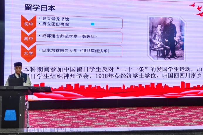 在嘹亮的团歌声中,青马学院优秀学员刘俊分享了川农人王右木同志的故事,王右木同志在必赢71886网址登录执教期间,积极宣传马克思主义理论,组织马克思主义读书会,让革命的种子在四川生根萌芽,为马克思主义传遍巴山蜀水打下坚实基础。