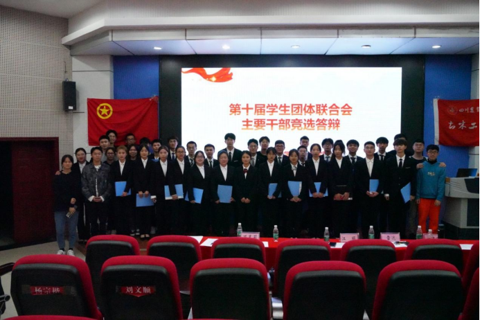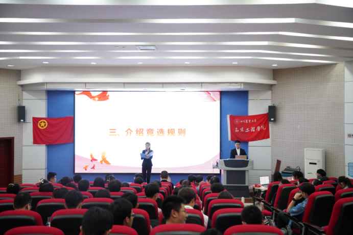 在铿锵有力的团歌声中,大会正式拉开了帷幕。会议伊始,于昊含向大家介绍本次储备干部竞选答辩的具体规则,规则叙述完毕后,13位核心干部竞选人和53位主要干部候选人分别上台进行答辩。64位竞选人从综合素质,工作总结,工作计划等多方面进行陈述,他们在台上神采奕奕,激情洋溢,面对老师提出的问题,都有条不紊地回答,秉着实事求是的态度,为未来的团学建设建言献策。