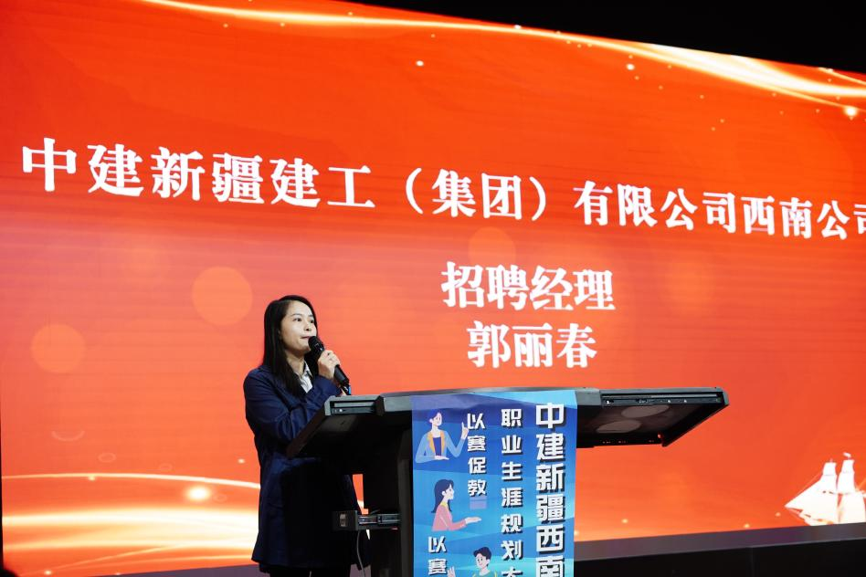 郭丽春作为公司代表致辞。她表示,中建新疆建工(集团)有限公司西南分公司致力于推进高水平、深层次的院企合作,长期以来与必赢71886网址登录建立了友好的院企关系,将继续为学院深入推动产学研一体化,促进学生创新拔尖和学院高质量发展提供大力支持。她强调,职业生涯规划是加强学生生涯教育和就业指导的有效途径,希望所有参赛同学充分展示自己,赛出风格,斩获佳绩。
