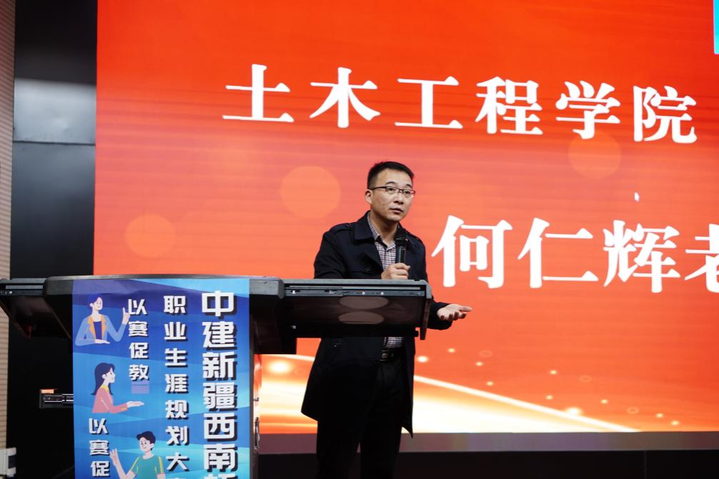 何仁辉对本次职业生涯规划大赛进行点评总结。他建议同学们一是要正确认识职业生涯规划的重要意义,做好自身职业生涯规划;二是要全面了解自己、分析职业环境,明确职业发展的目标和路径;三是要积极行动,不断补齐自己与实现职业目标所需的能力、素质及其他资源条件之间的差距。