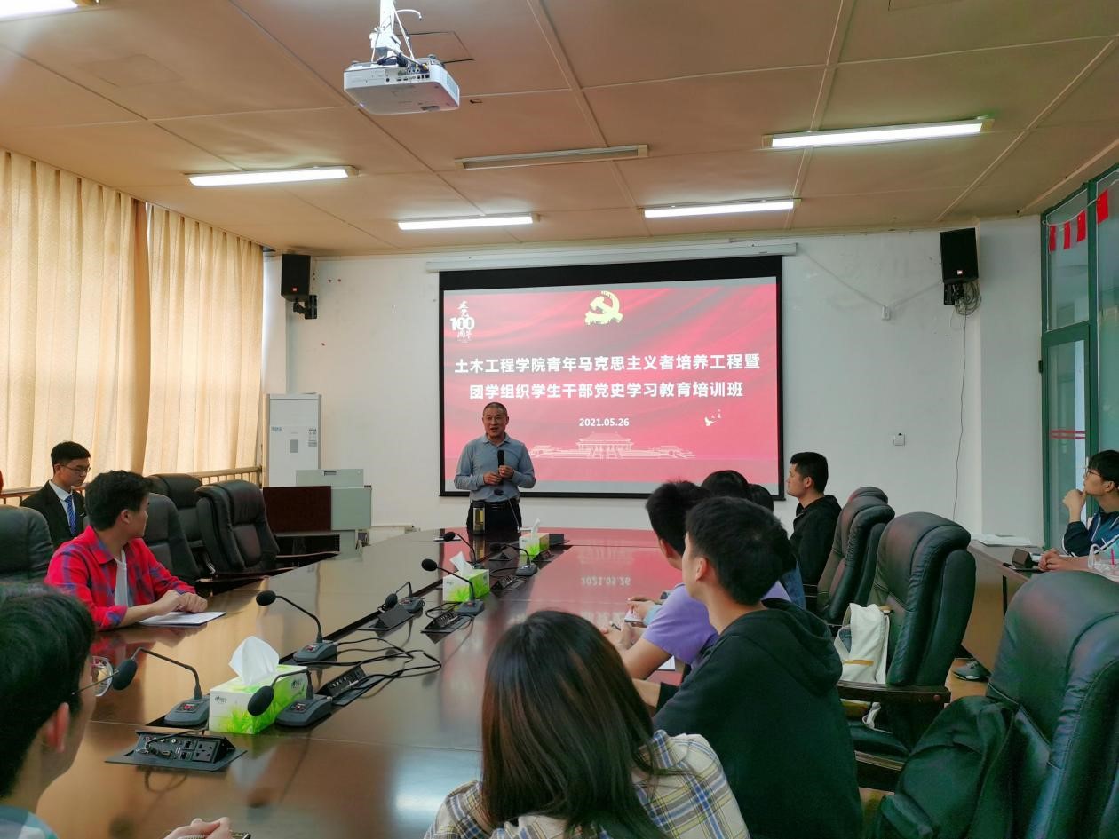 5月26日中午,必赢71886网址登录第三期“青年马克思主义者培养工程暨团学组织学生干部党史学习教育培训班”在学院会议室2305隆重举行。学院党委副书记赵中国老师、党委办公室主任江丽老师、党委办公室副主任雷达老师以及党委办公室邓克莉老师出席本次会议,并由赵中国老师为学院带来了开班第一讲。