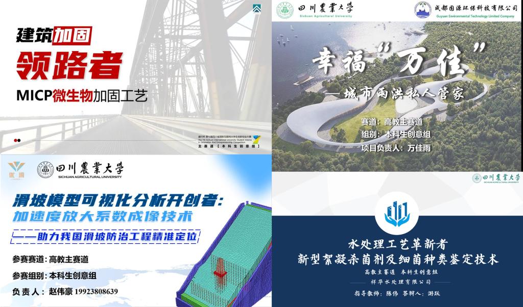 由肖维民指导,雷冠思、杨竣羽、刘锐、罗志强、罗丹妮、廖玲凤、刘凯、李天骢、孔祥民、薛天郎参与的“建筑加固领路者:MICP微生物加固工艺”项目,经过院内预选,校区选拔,四川省比赛多轮选拔,成功斩获省级金奖。