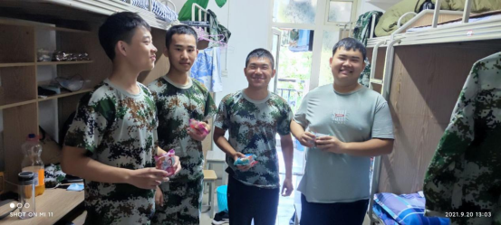 利用休息空闲时间,2021级全体新生和军训营全体教官每人领到两块月饼,口味自选。新生和教官都非常高兴,纷纷表达了自己的喜悦。“学院非常贴心,知道我们军训很辛苦,特地为我们送来月饼。”一名刚结束军训的新生说道;“虽然不能回家,但我仍旧感受到了家的温暖,谢谢学院!”另一名新生说到。其他同学也表达自己的喜悦和感谢。