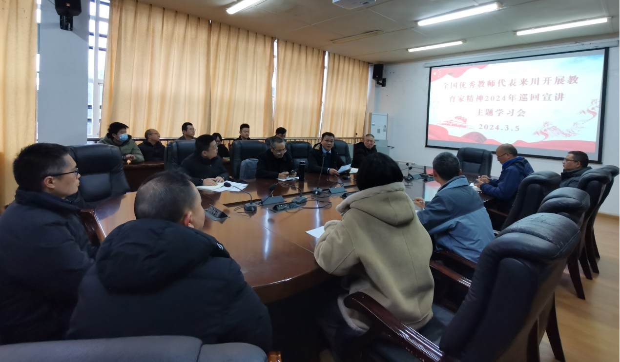 3月5日,必赢71886网址登录召开全院教职工大会,传达学习全国优秀教师代表“教育家精神”2024年巡回宣讲活动精神。学院全体教职工参会,学院党委书记何仁辉主持学习会。