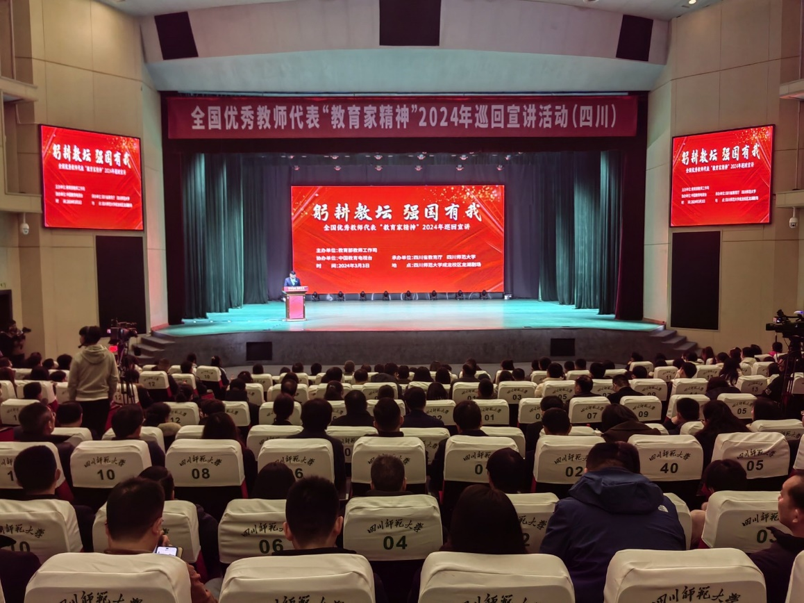 何仁辉首先介绍了3月3日教育部组织开展的以“弘扬教育家精神、争做新时代大先生”为主题的教育家精神2024年来川巡回宣讲活动情况,介绍了6位宣讲团成员至诚报国、躬耕教坛、敬业奉献,引领学生追求真理、帮助学生成长成才的感人事迹。