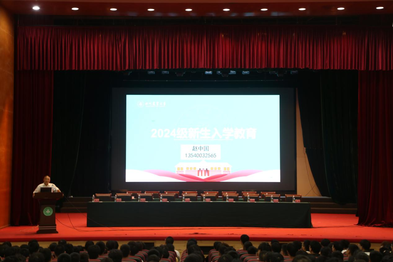 赵中国向同学们介绍了学校的教育管理体系以及管理办法,详细阐述了学生日常管理、学校概况等内容,为新生尽快适应大学学生和生活节奏奠定基础。他叮嘱同学们要遵守校纪校规,强化安全意识;激励同学们注重未来自我发展,以优秀学长学姐为榜样,在加强专业学习的同时积极参与学生活动,争取全方面发展;希冀同学们在未来四年中,确立人生目标,找到正确航向,努力成长为一名五育并举、全面发展的新时代川农人。