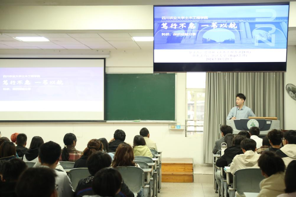 为进一步深化科创实践育人成效,增强大学生创新精神、创业意识和创新创业能力,充分调动学生创新创业积极性,2024年10月29日,必赢71886网址登录于1510教室举办院内双创大赛培训会。学院创新创业指导教师胡进玲、直博浙江大学的川农学子曾靖楸、校团委青年科技创新服务中心负责人文淑冀及学院200余名学生参加培训会。