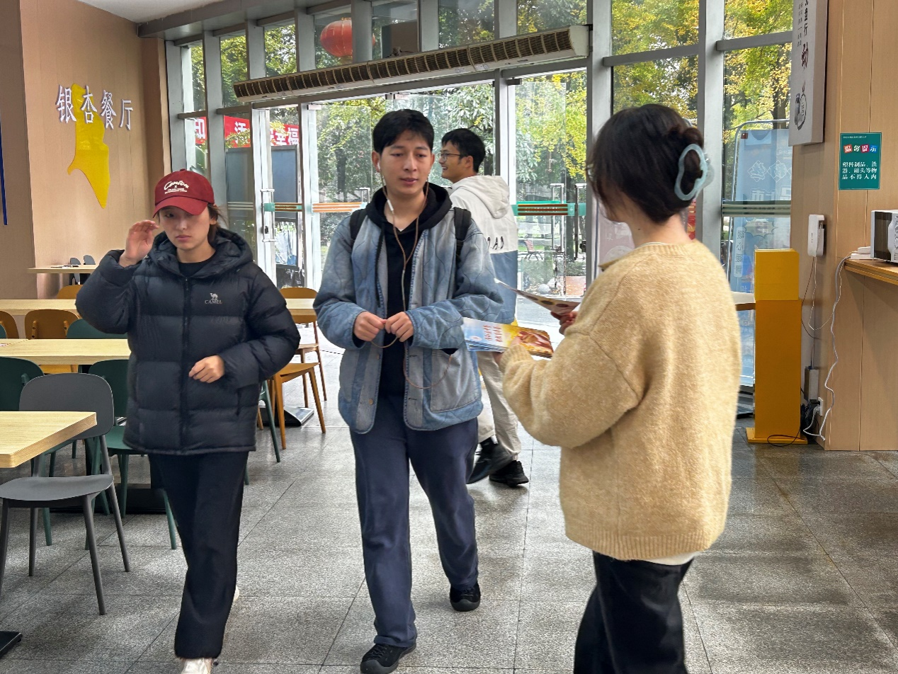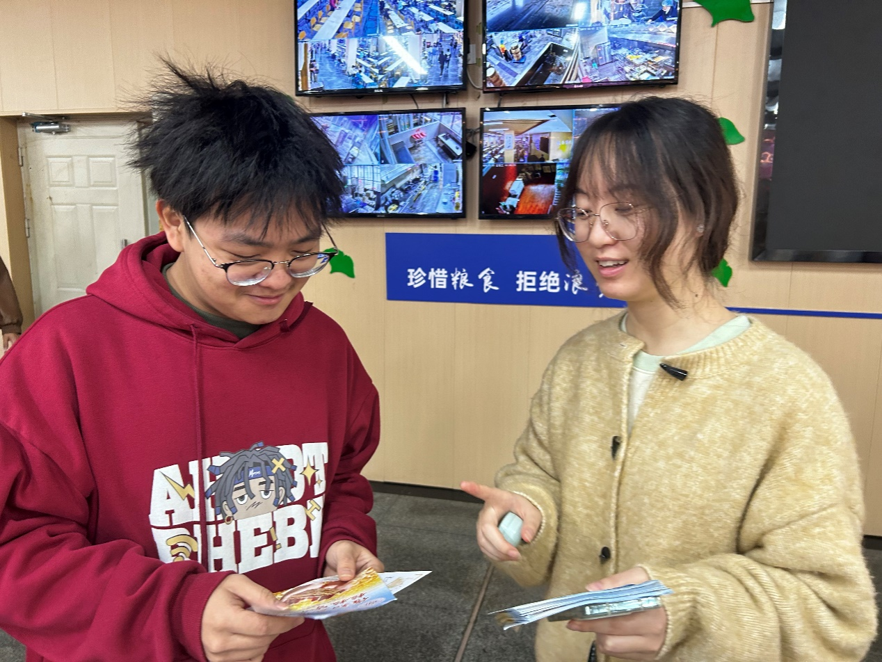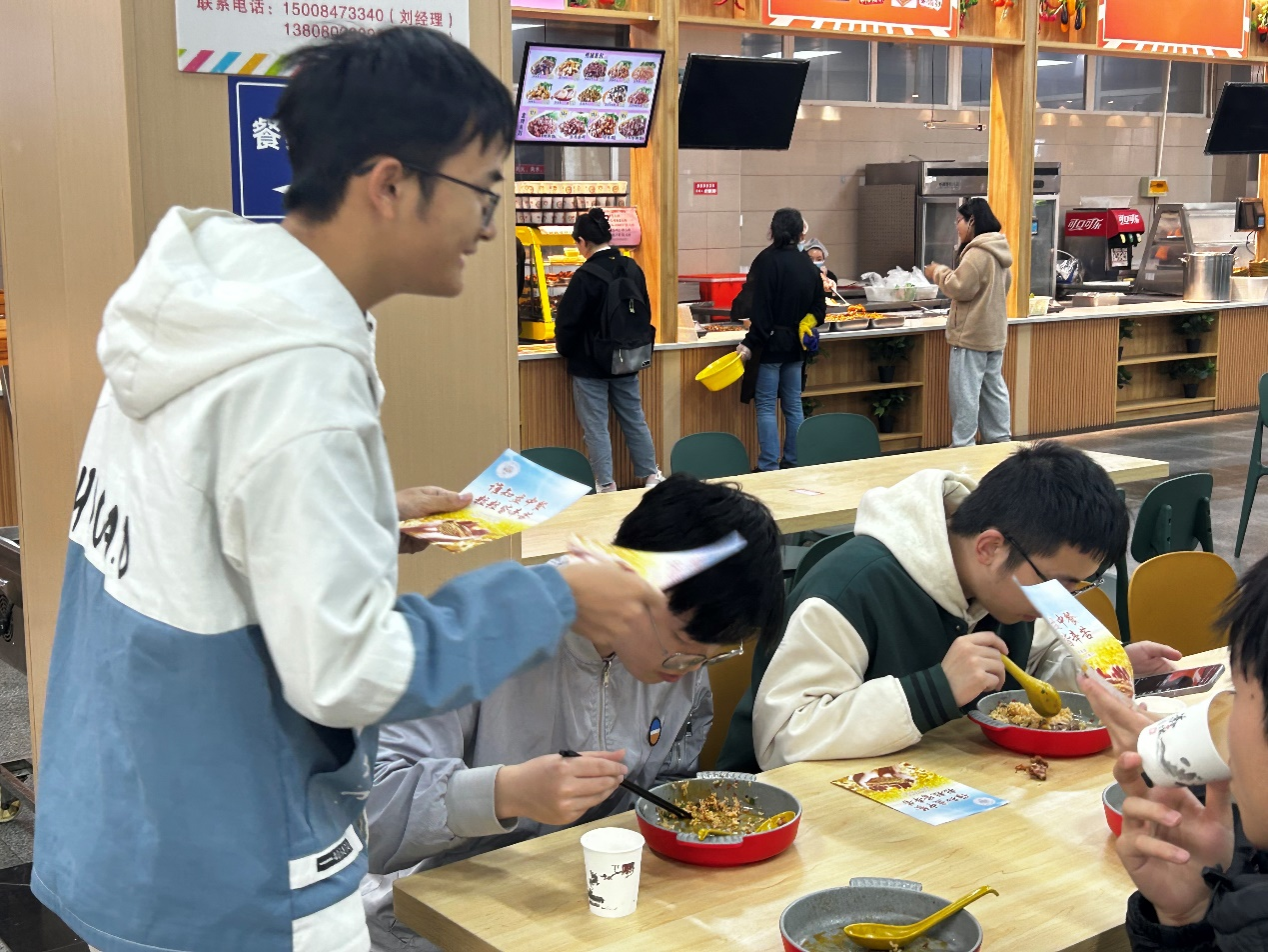 在这次以节约粮食为主题的校园活动一开始,志愿者们就在食堂门口设立了宣传站点,这个站点成为传递节约粮食信息的重要窗口。宣传单上印有“粒粒皆辛苦,珍惜每一粒粮食”“节约粮食,从我做起”等宣传语,这些简洁而有力的语言,提醒着每一位师生,每一粒粮食都凝聚着农民的汗水和大自然的恩赐,我们应当倍加珍惜。