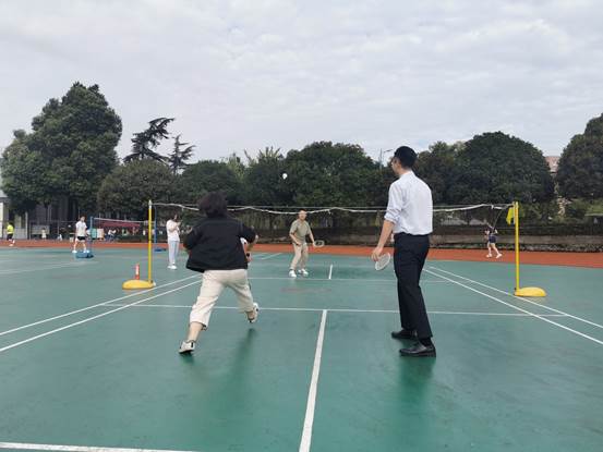 比赛分为男子单打、女子单打、男子双打、女子双打、男女混合双打。在比赛中大家互相配合,用力挥舞着球拍,尽显活力。运动场上充满了欢声笑语,充分展现了老师们积极向上的精神面貌。