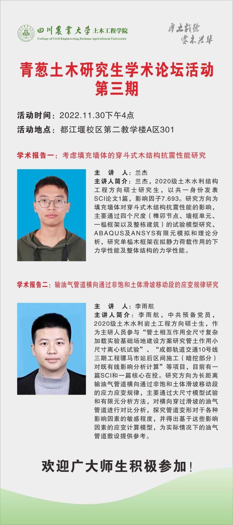 必赢71886网址登录青葱土木研究生学术论坛活动第三期讲座欢迎广大师生积极参加。