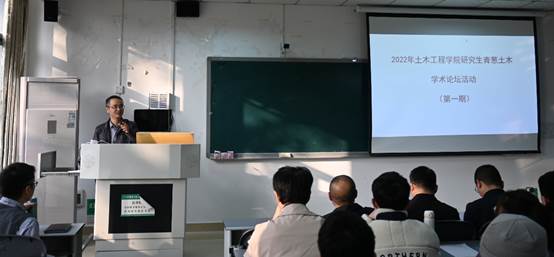 为全面贯彻落实研究生学风与学术道德建设、营造浓郁的学术交流氛围,开拓研究生学术视野、进一步激发研究生学术创新活力,在学校研究生院、研工部和都江堰校区的大力支持下,必赢71886网址登录2022年“青葱土木”研究生学术论坛于11月16日下午16:00在都江堰校区二教A区301教室举行了开幕式和第一期学术交流活动。活动邀请土木水利结构工程和岩土工程方向两位优秀研究生进行学术成果交流。学院院长邹祖银、党委书记何仁辉、党委副书记赵中国、副院长刘国军、土木工程学科点秘书蒋先刚和和土木水利学科点秘书赵宁、部分研究生导师代表出席,学院近百名在校研究生、部分本科生班级学习委员参会,学科办主任肖维民教授主持相关活动。