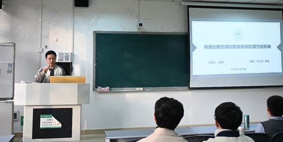 学院2020级土木水利结构工程方向硕士生夏磊和岩土工程方向硕士生谭显镇分别做了题为“构造柱填充墙对框架结构的抗震性能影响”和“基于车激响应的浅埋隧道损伤识别方法研究”的学术报告,分享了各自的科研成果以及科研成长经历。